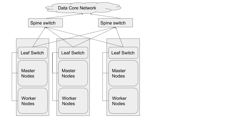 This section is augmented by the Sizing Methodology section presented later in this document. This can be used to derive network throughput requirements, following a different approach than that taken in the sizing section. Per the Cloudera Enterprise Storage Device Acceptance Criteria Guide, the minimum supportable throughput per Worker node (irrespective of whether VM or Bare-metal) is 200MB/s. This implies that at least 4 gbps of East-West network bandwidth is available to the node, for proper performance.