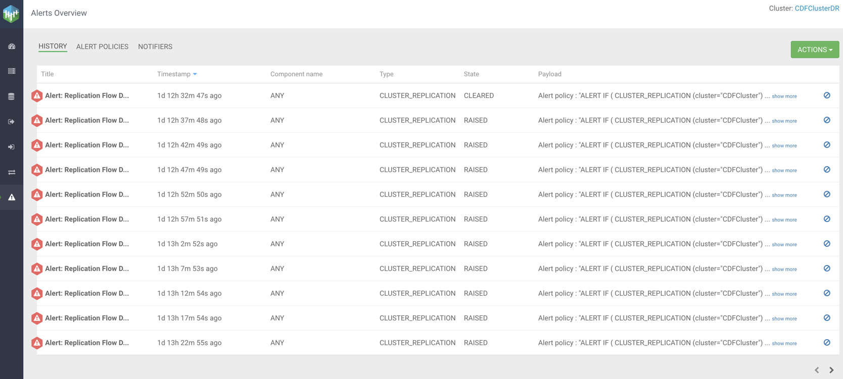 Alert Policies in SMM are user configured alerts that automatically trigger when configured conditions are met. An alert contains the details of the policy including the alert message and the conditions that triggered the alert. Once an alert is triggered, a notification is sent out by SMM using the Notifier associated with the Alert Policy. You can use these alerts and notifications to monitor the health of Kafka, as well as to identify and troubleshoot problems.