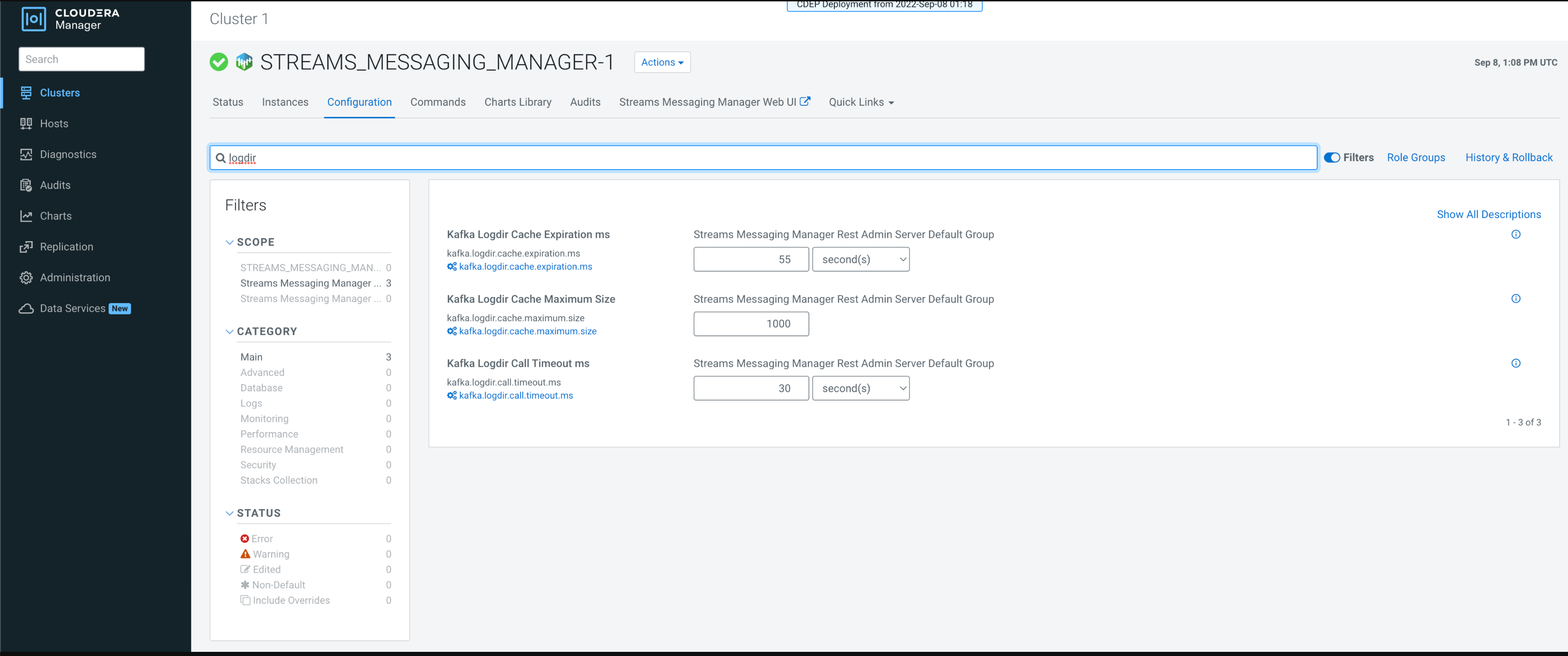 modify these attributes in the SMM configuration page of the Cloudera Manager UI: