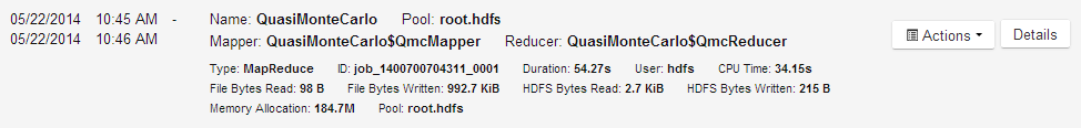 Run the Hadoop PiEstimator example using the following command: