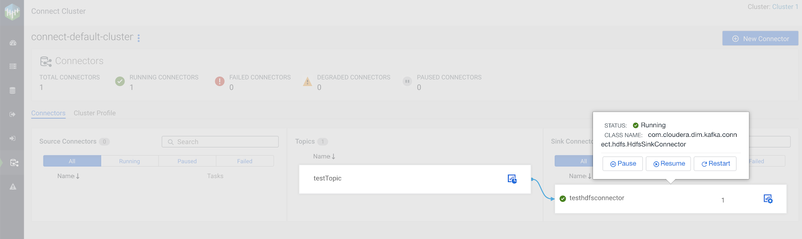 On the UI the HDFS Sink Connector is represented by its class name, which is com.cloudera.dim.kafka.connect.hdfs.HdfsSinkConnector.