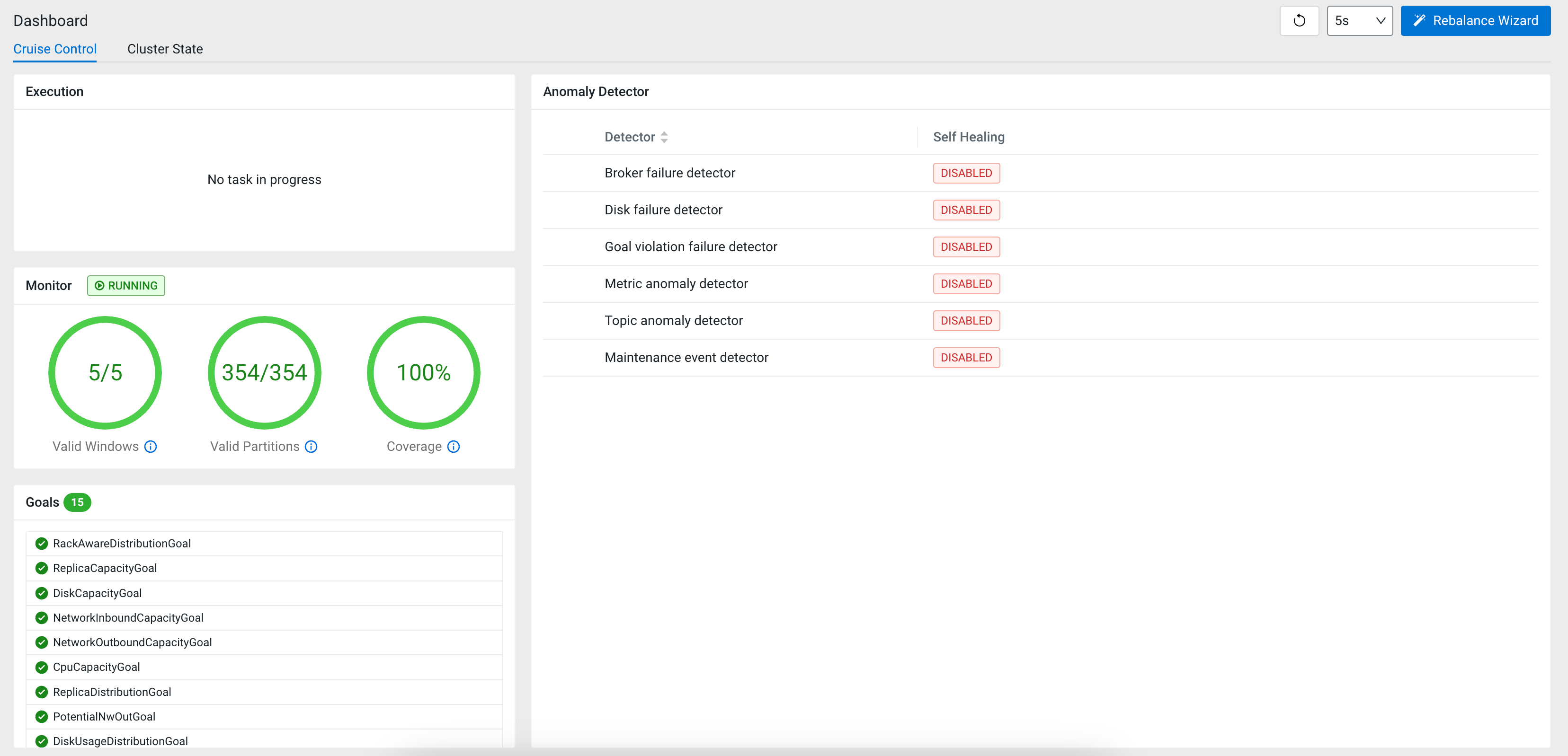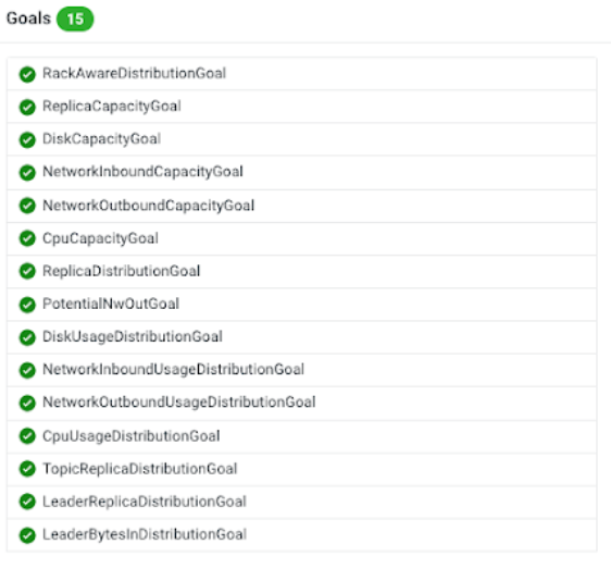 • List of goals configured in Cruise Control and their status (ready or not ready)