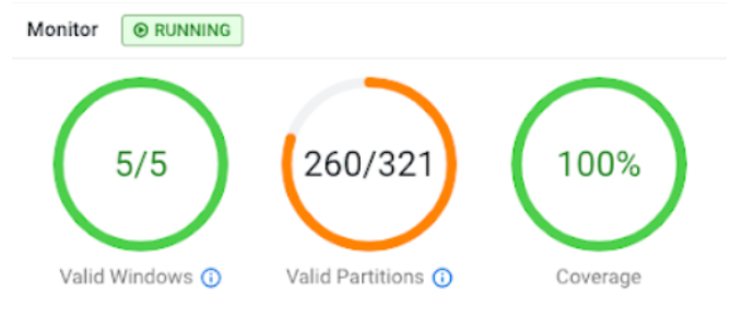 The Monitor tile always shows the ratio of Valid Windows, Valid Partitions, and Coverage of the Kafka cluster.