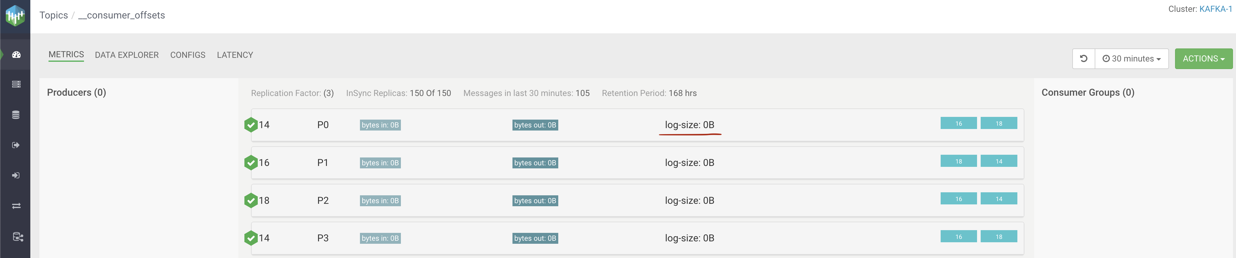 broker are displayed. The log-size information per partition is available. Furthermore, the