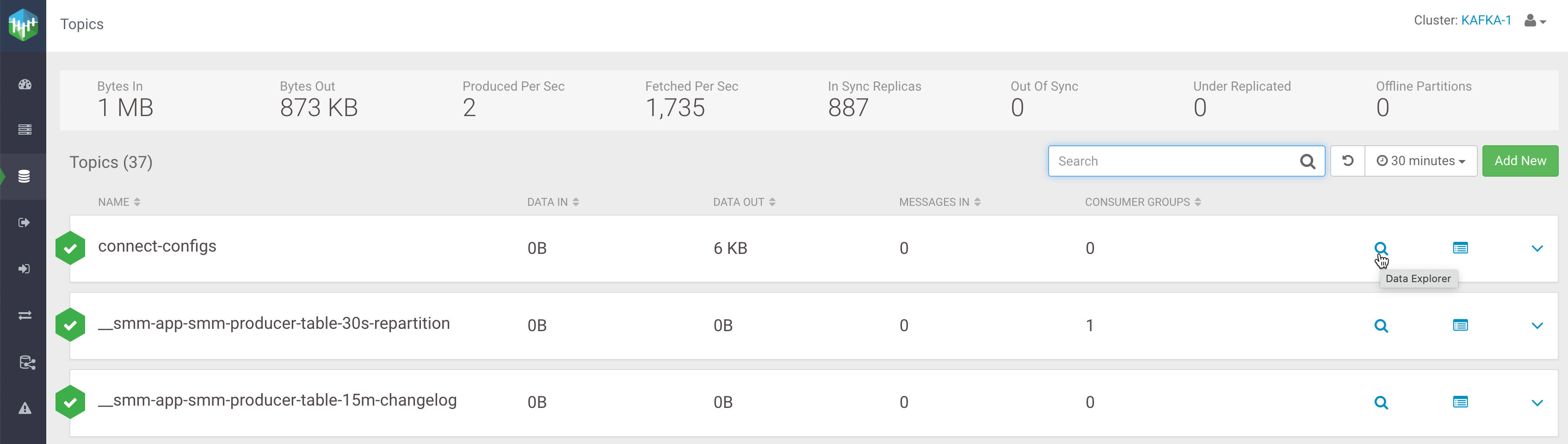 Data Explorer is a simple Kafka consumer within Streams Messaging Manager. It enables you to view the content of a Kafka topic. You can select any Kafka topic and any partition within that topic, and view messages from the selected partition.