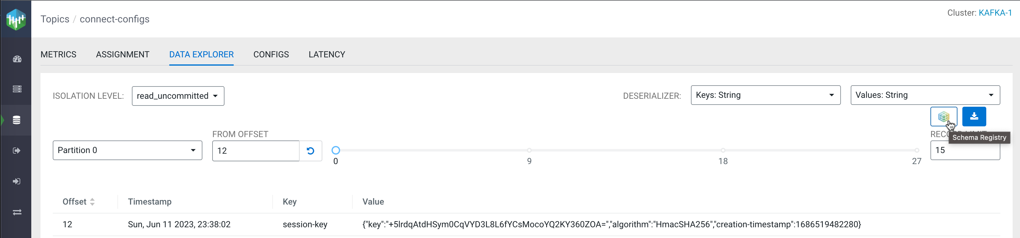 11. Click the Schema Registry icon to go to the related page in the Schema Registry UI.