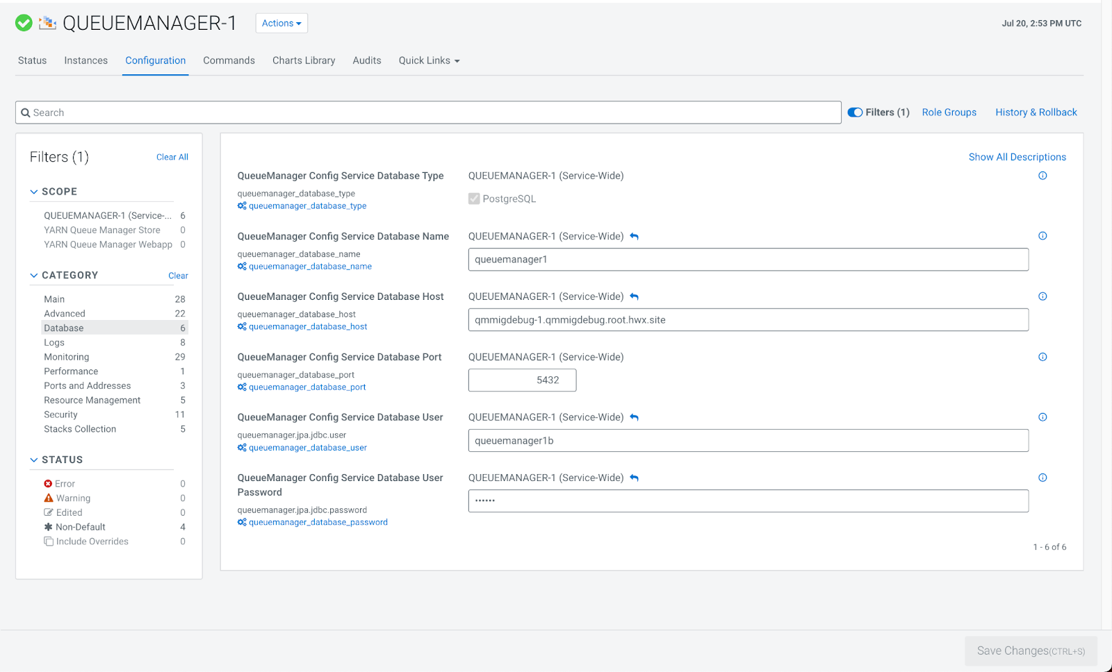 • QueueManager Config Service Database Host