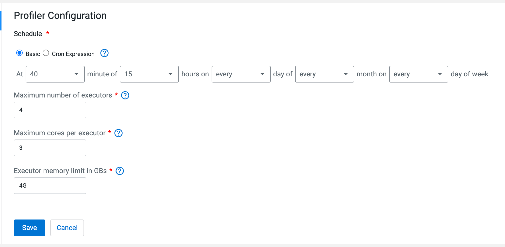Figure 1. Profiler schedule with cron expression Figure 2. Profiler schedule with natural language -